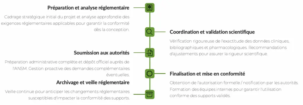 Dirona Consulting accompagne les entreprises du secteur de la santé dans toutes leurs démarches d’affaires réglementaires pharmaceutiques, de la stratégie de soumission à l’interaction avec les autorités sanitaires. Notre expertise couvre la rédaction de dossiers réglementaires, l’accès précoce, les autorisations, la validation des supports promotionnels ainsi que la formation interne.